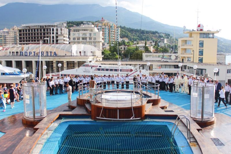 The FSUE “Rosmorport” branches have taken part in However, not only the branches of FSUE “Rosmorport” took part in the celebrations. The Knyaz Vladimir cruise ship, which is currently in Yalta, also joined the holiday. The ceremony of hoisting the Russian State Flag aboard the vessel involved the captain, the crew of the vessel and all passengers of the liner.