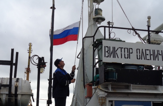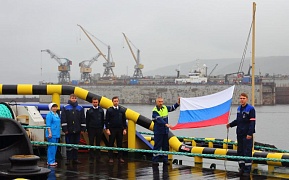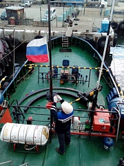 First the Russian State Flag was hoisted on vessels of the Sakhalin Branch: on the Viktor Olenich, Vostok, Dobrynya boats and on the Farvater dredger. The festive events took place on FSUE “Rosmorport” icebreakers. Thus, the flags on the Krasin and Kapitan Khlebnikov icebreakers were solemnly hoisted in the Far Eastern Basin Branch. Cadets of Neveskiy Maritime State University were conferred the right to hoist the Russian tricolored flag. They undergo training on the Professor Khlyustin vessel.