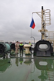 In the North-Western Basin Branch the solemn ceremonies of hoisting the Russian flag were conducted on the Moskva, St Petersburg, Tor, Kapitan Nikolayev, Murmansk, Kapitan Sorokin icebreakers, as well as on the Sommers dredger and the KS-110 pilot’s boat.