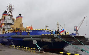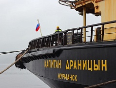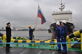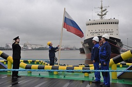 The solemn ceremony of hoisting the Russian state flag was conducted in the FSUE “Rosmorport” Arkhangelsk Branch in the morning on the Spolokha and Gals boat, the Arkhangelsky, Severnaya Dvina dredgers, the Dikson, Kapitan Chadayev and Kapitan Kosolapov icebreakers. In Murmansk the flags were hoisted on the Kapitan Dranitsyn and Novorossiysk icebreakers and on the Lebedin boat.