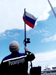On this holiday solemn events have been held in all branches of FSUE “Rosmorport” – from Vladivostok to Kaliningrad, from Murmansk to Makhachkala. Over 100 flags are flying on vessels and flagstaffs of the enterprise’s administrative buildings.