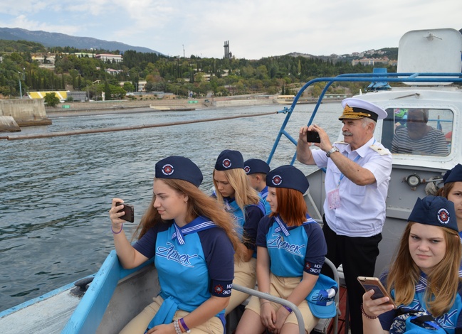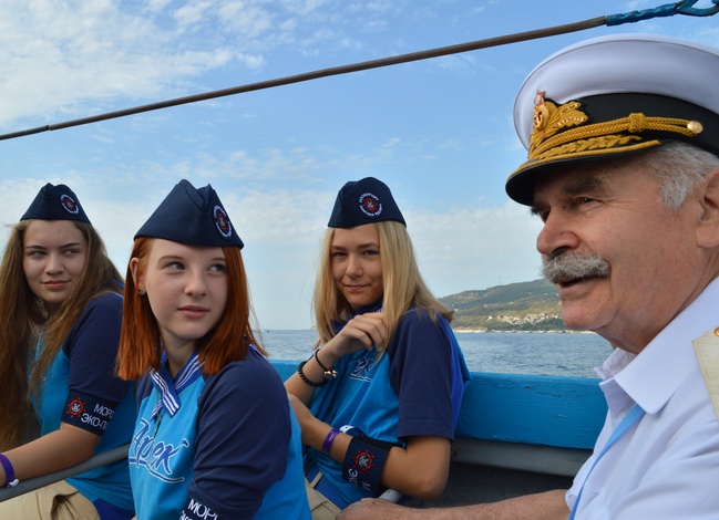 The participants in the competition have been awarded aboard the Khersones sailing ship. The ceremony involved the ship’s Captain, Dmitry Teslenko, Chairman of the All-Russian Public Organization “Youth Maritime League of Crimea”, Yalta Port Captain Boris Furman, Director of the Yalta Children’s Maritime Center Olga Yakovleva, Director of the Regatta International Maritime Agency Oleg Ponomarenko. Mayor Vil Sarychev, who took part in the military actions during the Great Patriotic War and who is the oldest yachtsman of Crimea, master of sport of the USSR in ski jumping and car rally, has become an honorable guest of the regatta. Addressing the young sailors, Dmitry Teslenko expressed the hope that jack tars would transform their love of sea into future professions.