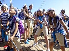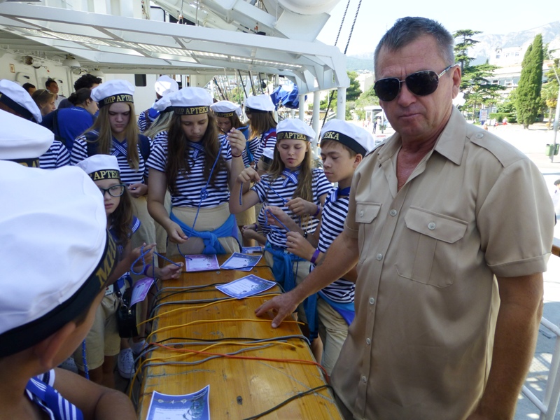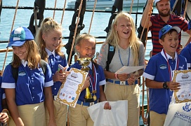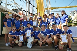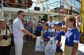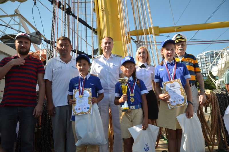 The ship’s crew and cadets of the industry’s educational institutions congratulated the winners. Cadets who underwent training on the ship conducted a fascinating excursion and told the guests about the ship’s construction. Experienced sailors told interesting stories on long-distance voyages. Master classes on maritime disciplines were organized for children: binding nautical knots and up-to-date navigation methods, the work with the sails.