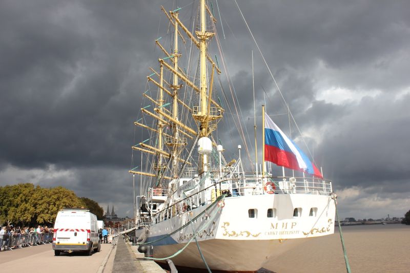 The Mir sailing ship call at the port of Bordeaux has big significance for cultural exchange relations between Russia and France and for promoting the sailing fleet. In June 2018 Bordeaux will accept big sailing ships during The Three Festivals Tall Ships Regatta 2018. Sailing ships taking part in the Tall Ships Regatta will arrive here upon their stopover in Dublin on their way from Liverpool.