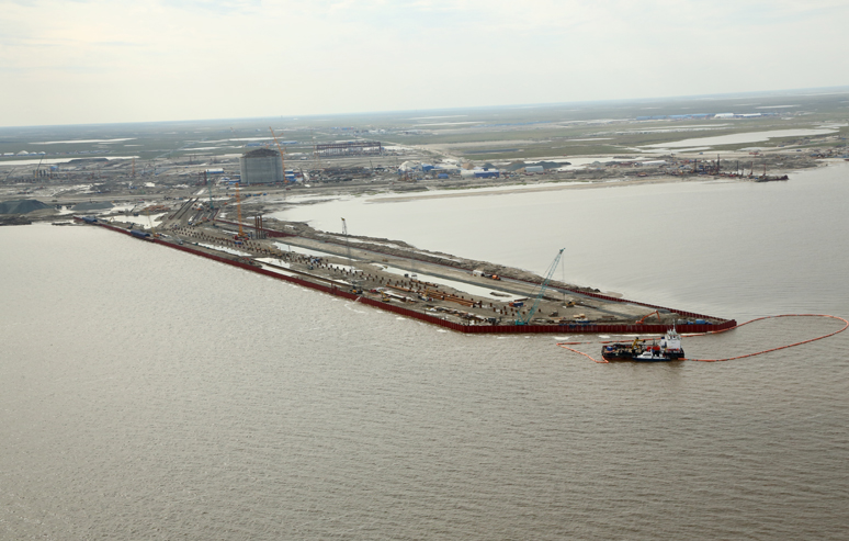 The artificially created plot of land is designed for deploying a flaring facility and facilities for liquefied natural gas and gas condensate unloading system.