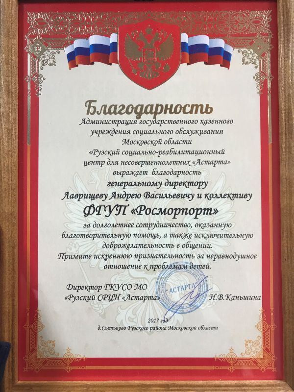 Old ties of friendship unite FSUE “Rosmorport” and the “ASTARTA”. For more than five years sponsors of the center take care of children, provide assistance, warmth and support to them.