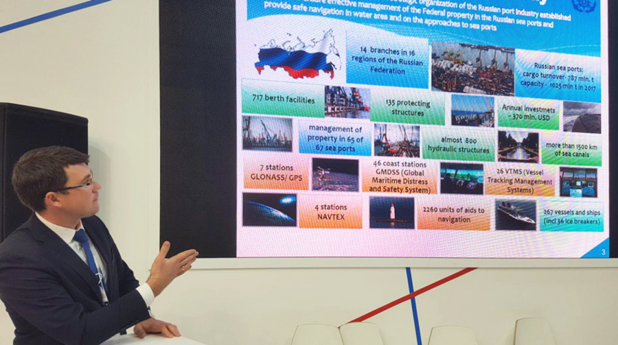On March 21, as part of the business program of the exhibition, chief of the FSUE “Rosmorport” department for investment management and the strategic development Andrey Boldorev delivered a presentation on the topic “The Current State and Plans for the Development of the Port Infrastructure of the Russian Federation”.