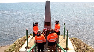 The FSUE “Rosmorport” jubilee flag has been hoisted on the southernmost and picturesque area of the island from where one can observe illimitable spaces of the Sea of Japan and the Sea of Okhotsk, and La Perouse Strait dividing the islands of Sakhalin and Hokkaido. During the route, the participants in the action passed 472 kilometers.