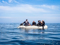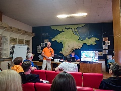 The onshore part of the expedition made up 1,100 km and included 17 field passages. The group conducts observations, researches and project operations in Kerch, Sudak, Feodosia, Saki, Alushta and Yevpatoria. During the expedition, the participants in the project went sightseeing of the peninsula, organized creative performances, master classes and took part in the Marine Bravery memory watch. Meetings have been held with schoolchildren, students and holiday-makers of sports and recreation centers.