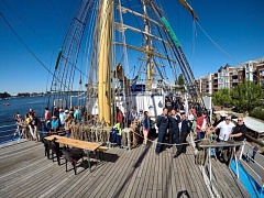 During the mooring, the Mir sailing ship worked in open board mode. Excursions and master classes were organized for all who wished. Cadets showed team cohesion, fleet hospitability and maritime solidarity.