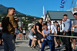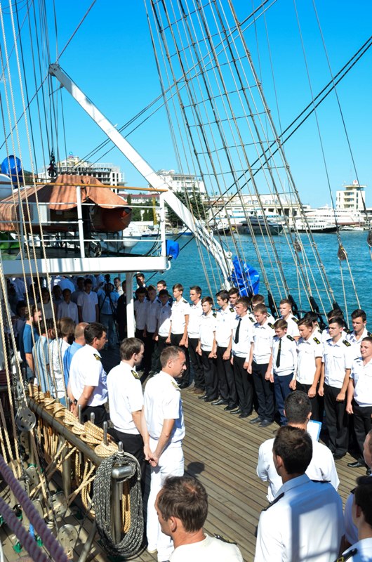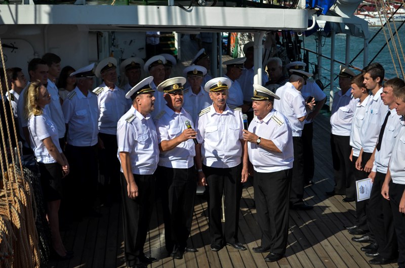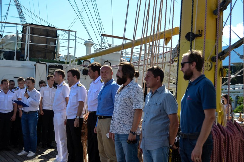 A congratulation sent over by the Minister of transport of Russia Eugene Dietrich was read on board a sailing ship. Dmitry Teslenko, the Captain of the “Khersones” sailing ship also made a welcoming speech and made his best wishes to the guests. A few complimentary words also came from the honored guests: Alexei Volkov, the General Director of SUE “Crimean sea ports”; Roman Podsudevskiy, Director of SUE Crimean Sea Port branch – “Yalta Commercial Port”; Boris Furman, Captain of the seaport of Yalta.