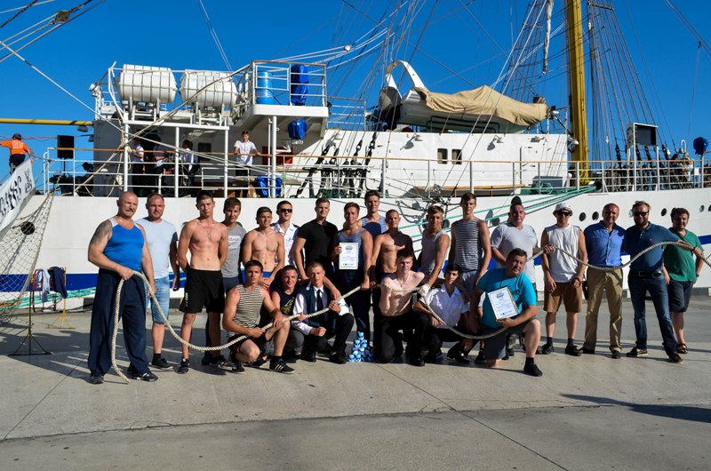 And by tradition, the festival ended by a tug-of-war competition. As usual, the winners received the traditional sweet prize - a box full of condensed milk cans. That time the cadets had to compete against the SUE Crimean Sea Port branch -"Yalta Commercial Port" Team, which ended up winning the event. The second and third places went to the “Khersones” sailing ship teams of cadets.