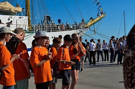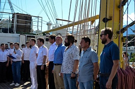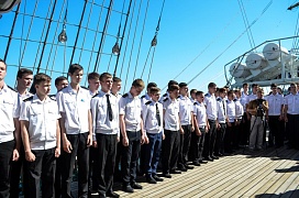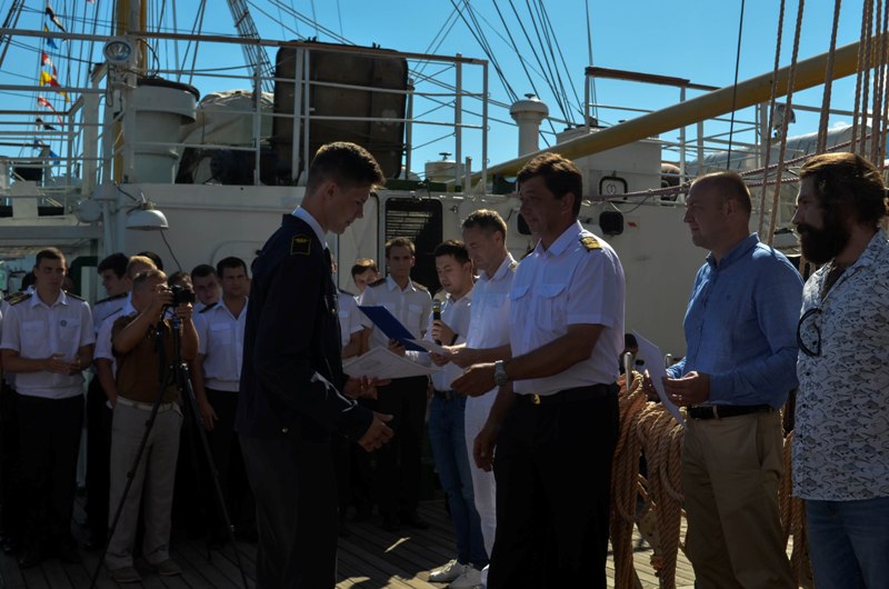 Also, there was an awarding ceremony which was held as part of festivities: cadets of industrial educational institutions were granted commendations for the success achieved in the course of the shipboard training practice on board the “Khersones” sailing ship.