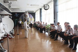 On the children's camp birthday, cadets of maritime educational institutions, who are undergoing practice on the frigate, took part in celebrations. After the morning celebratory assembly and the official part of the program an excursion was conducted for them. The youngsters visited the museum of the Naval Glory, as well as the Museum of Aviation and Cosmonautics. The crew and cadets of the sailboat were invited to a concert.