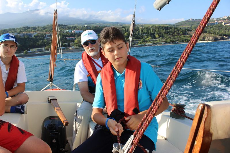 Training has been held not only in classrooms. Fascinating excursions and master classes have been organized for the children. During regattas, the crews passed more than 10 nautical miles in the water area of the Black Sea under oars and sails, acquired skills to make 10 major knots, studied issues related to safety at sea and rendering first medical aid. They also studied the major outfit of a cock boat (over 60 elements) and rigging of the Yal-6 cock boat and a yacht of ¾ tons class.