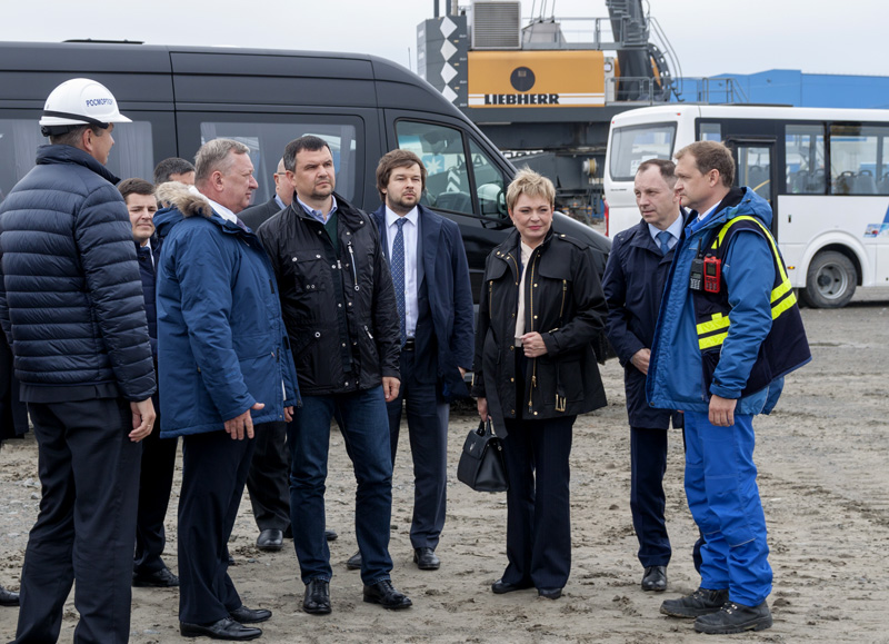 On the same day the participants in the meeting have visited several facilities and harbor works in the seaport of Sabetta. FSUE “Rosmorport” General Director Andrei Lavrishchev provided explanations on the current state and plans on the development of the youngest Russian Arctic port.