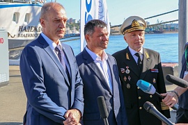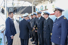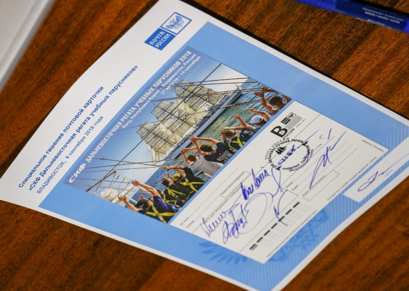 A solemn ceremony was held on the Nadezhda sailing ship to cancel a postcard issued by Russia’s Post in limited quantities especially for this event. Primorye Territory Administration head Andrei Tarasenko greeted the participants in the celebrations. The event also involved Rosmorrechflot Deputy Head Alexander Poshivay, Vladivostok Mayor Vitaly Verkeyenko, Director of Sail Training International (STI) Einar Korvin, who is also the regatta’s chairman, Director of the FSUE “Rosmorport” Far Eastern Basin Branch Viktor Vanyukov, and Admiral Nevelskoy Maritime State University Sergei Ogay.