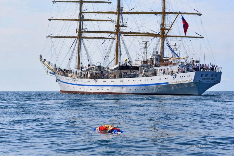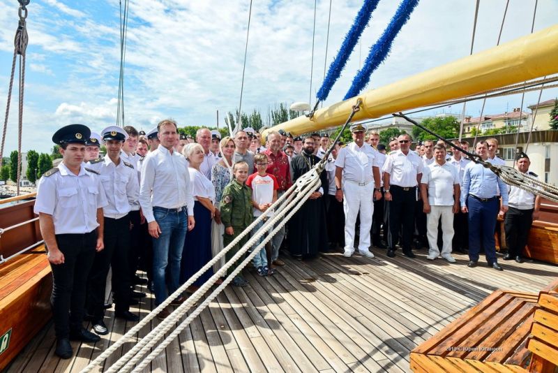 The FSUE “Rosmorport” Khersones sailing ship took part in the maritime sacred procession on the Crimean Peninsula on July 12-17, 2019. The ceremony was timed to the memory of the crew of the Vesta steamboat perished at Cape Tarkhankut. In 1877 the vessel won a victory over the enemy during the Russian-Turkish war. More than one hundred years later the residents and guests of Sevastopol remember the great feat and pay homage to the defenders of Motherland.