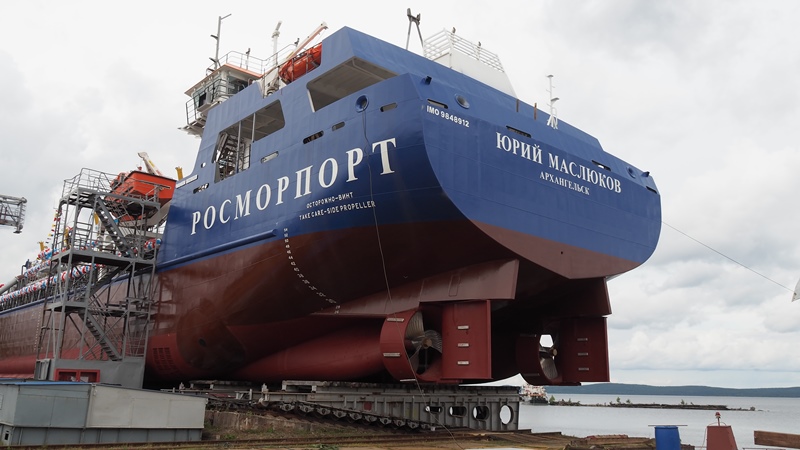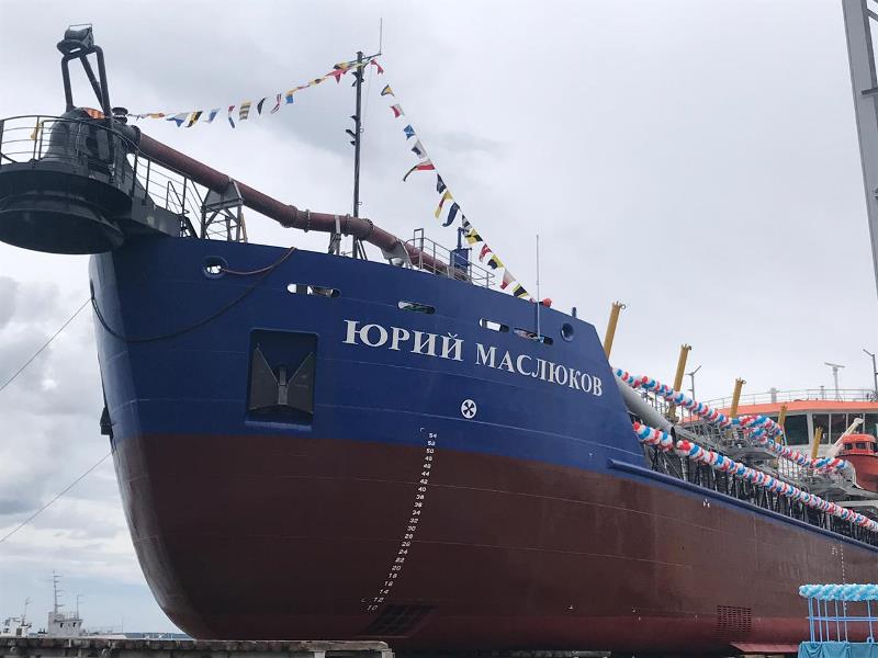 A solemn ceremony was held at the Onezhsky Shipbuilding and Ship-Repairing Plant in Petrozavodsk August 23, 2019 to launch the Yury Maslyukov hopper dredger.