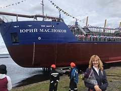 Ekaterina Tsvetkova, who engaged herself in the maritime industry just like her parents, has become a godmother of the hopper dredger. Over 15 years she has been working in FSUE “Rosmorport” and advanced from internal accounting top specialist to senior accountant – chief of the department for methodology accounting and reporting.