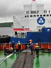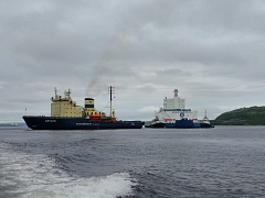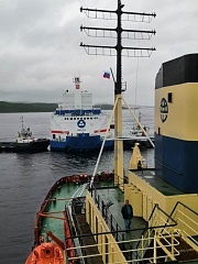 The icebreaker will provide the movement of the nuclear power plant along the Northern Sea Route to the base location in the seaport of Pevek. On August 23, 2019 pilots of the FSUE “Rosmorport” Murmansk Branch provided the exit of the floating power unit with the capacity of 80 Mw from the seaport of Murmansk. It is planned that it will take a month to carry out the towing operation. A total of 2,600 nautical miles will be passed.