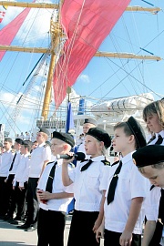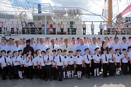 Maritime songs and marches performed by the Black Sea Fleet orchestra made the ceremony solemn. The cadet initiation ceremony aboard the legendary Khersones sailing ship has become a clear and unforgettable event for everyone who took part in it.