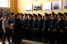 Ahead of the training a send-off ceremony has been held in the Federal State Budgetary Educational Institution of Military Education “Admiral Makarov State University of Maritime and Inland Shipping”. A solemn parade also took place.