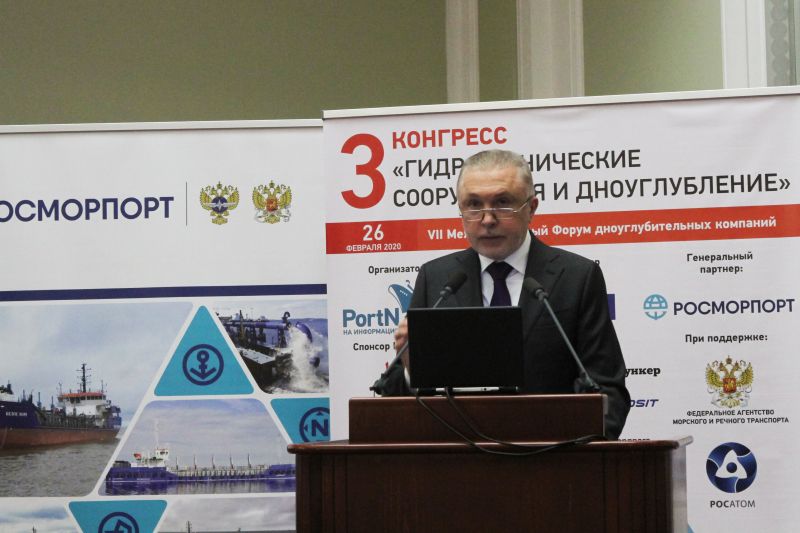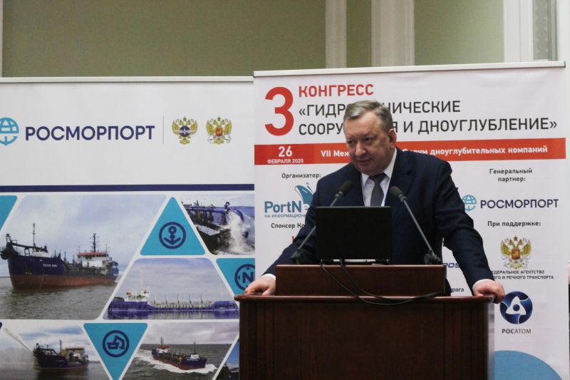 The III congress “Hydraulic Facilities and Dredging Operations” was held in Moscow on February 26-27. By tradition FSUE “Rosmorport” acted as a general partner of the congress. The discussions focused on the development of water facilities of the country and involved Rosmorrechflot acting head Alexander Poshivay, the FSUE “Rosmorport” delegation led by General Director Andrey Lavrishchev, representatives of Rosatom State Corporation, dredging and shipbuilding companies, and public organizations of the industry.