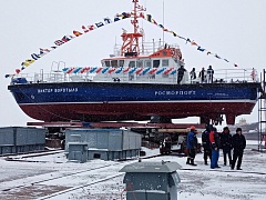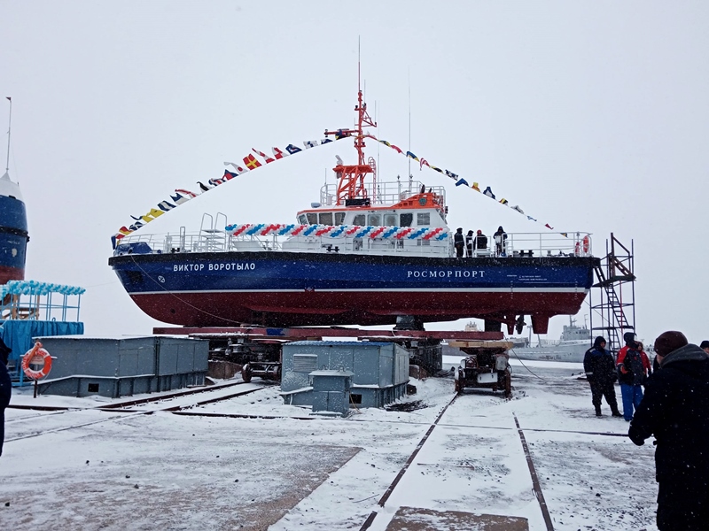 A ceremony was held at the Onego Shipyard in Petrozavodsk on February 28, 2020 to put afloat the Viktor Vorotylo new boat. The boat of project ST23WTM-H with an innovation hybrid diesel electric propulsion system became the second vessel being built by FSUE “Rosmorport” order. The first boat, the Anatoly Klimov, had been put afloat in the beginning of the year.