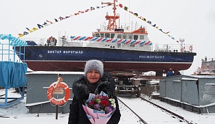 Natalya, one of the daughters of Viktor Vorotylo, became a god mother of the boat. The boat was named after Victor Vorotylo, one of the experienced specialists of the industry, who worked as operations director at the Onego Shipyard for many years. By the fleet tradition a bottle of champagne was broken over the hull of the ship to herald a new life of the boat.