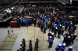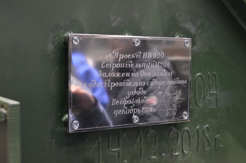 A keel laying ceremony was held at the Onego Shipyard in Petrozavodsk on December 14, 2018 to build a new sludge barge (a self-propelled barge) of HB-600 Project.