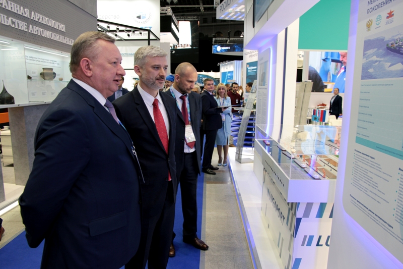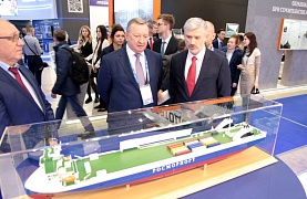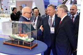 The stand showed a shallow draft icebreaker model of project 22740 M. At present, an agreement has been concluded at the Zvezda shipyard and project documentation have been worked out. Andrey Lavrishchev riveted attention to a vessel’s key particulars.