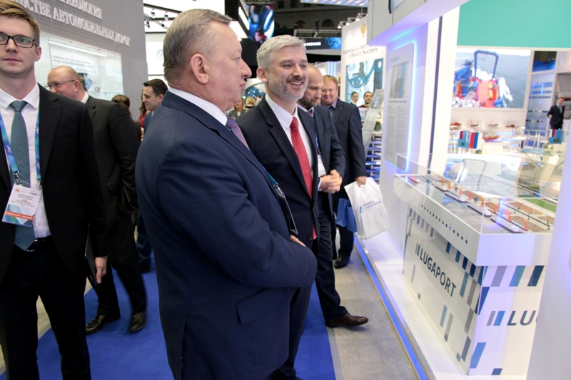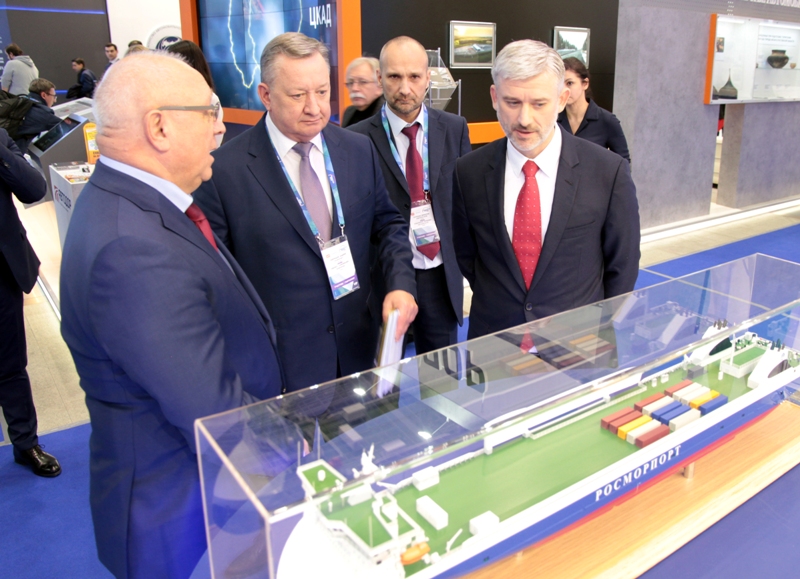 Russian Transport Minister Yevgeny Ditrikh visited a stand of FSUE “Rosmorport” within the exhibition “Transport of Russia 2018” on November 21, 2018.