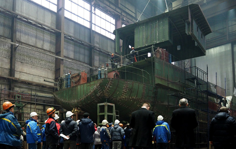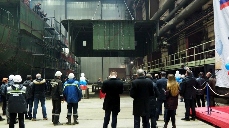 M 3,0 A (Ice 30) Class buoy tender laying ceremony held at Onega Shipyard