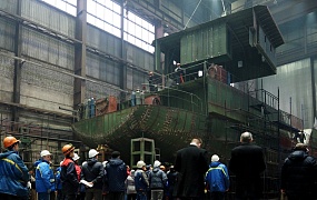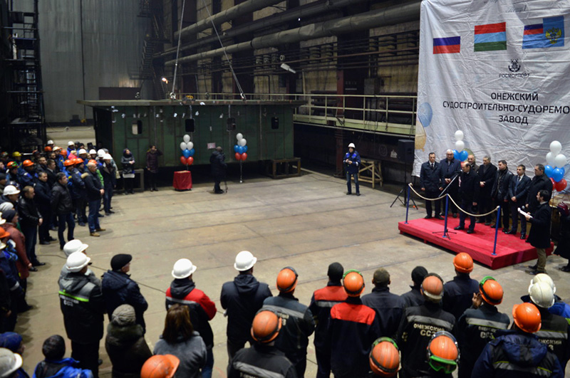 The laying ceremony was attended by Republic of Karelia Deputy Prime Minister for Economic Issues Dmitry Rodionov, head of the Federal Government Institution “Rechvodput” Mikhail Drobin, general designer of the Shipbuilding Engineering Center, JSC Anatoly Benenson, employees of FBI “The Administration of the Volga Baltic Waterway”, director of the Onega Shipyard Vladimir Maizus, members of the Legislative Assembly of the Republic of Karelia, the city administration and other officials.