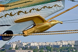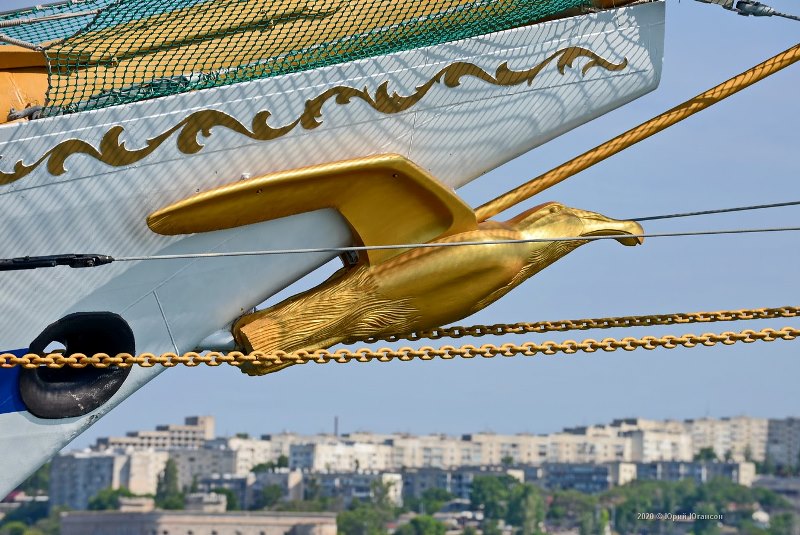 This year the children had an opportunity to see the Khersones historical look. During the repairing works, the “Golden Albatross” galleon (head) figure, the symbol of Cape Horn that the frigate had rounded in 1997 for the first time, has been installed on the stem of the ship. The initial model of the Albatross has been lost. Then, when the figure was found in 2015 it was beyond repair. While preparing for the 2020 navigation the sailing ship has again found its magic figure.