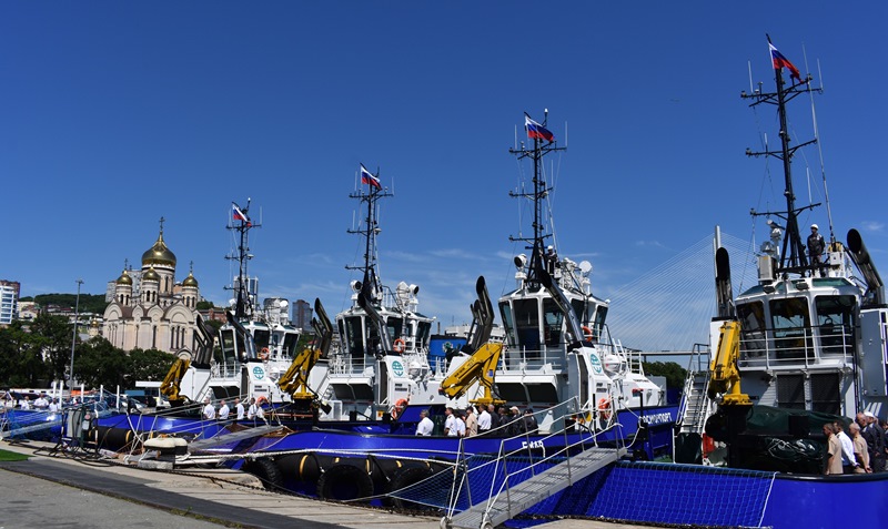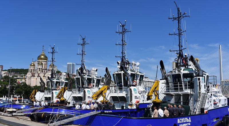 On July 21, 2020 the seaport of Vladivostok hosted a solemn ceremony of raising the National Flag of the Russian Federation and consecration of the new Askold, Emar, Sukhodol and Truzhenik tugboats, which became the part of the company fleet in the Far East.