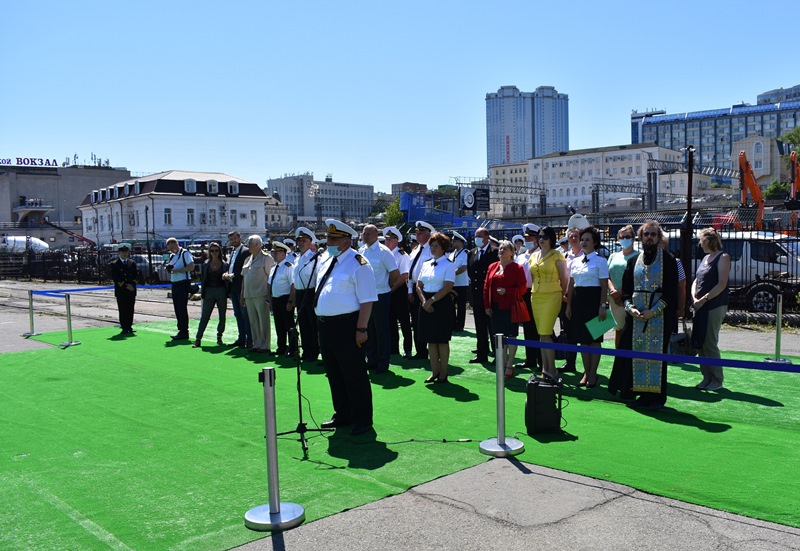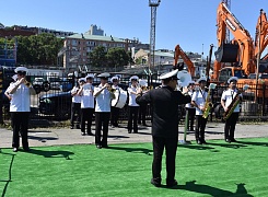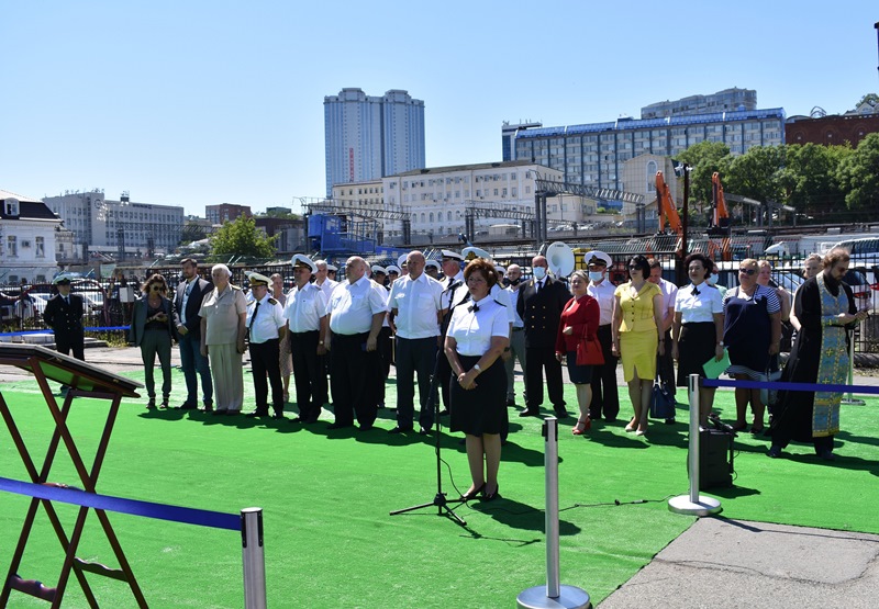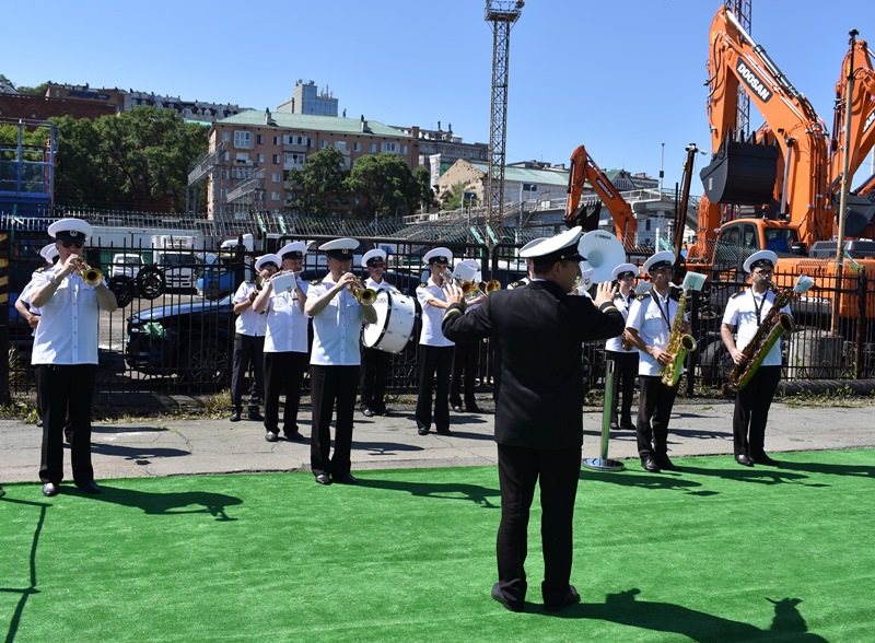 Director of the Far Eastern Basin Branch Viktor Vanyukov commanded to raise flags on tugboats, and then the Russian flags, accompanied by the National Anthem of the Russian Federation, performed by the orchestra of Moscow State University named after G.I. Nevelsky, rose over the tugboats.