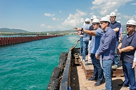 The session was chaired by Deputy head of Rosmorrechflot Zachary Dzhioev, with the participation of Andrey Lavrishchev, General Director of FSUE "Rosmorport", as well as Aleksandr Kalistratov, head of the Directorate of the facility "Complex of coastal and marine infrastructure in the sea port of Gelendzhik", representatives of the general contractor – JSC "Stroytransgaz" general director Igor Zabiran and project director Andrey Beshentsev, general director of JSC "LENMORNIIPROEKT" Igor Rusu, and general director of LLC "Gelendzhik Seaport" Vladimir Kolbin.