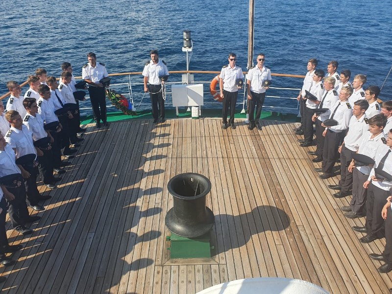 Cadets on the Khersones sailing ship of the FSUE “Rosmorport” laid wreaths at the place of the Armenia vessel wreck