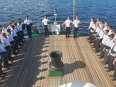 Cadets of the Institute of Water Transport named after G.Y. Sedov undergoing training practice aboard the Khersones sailing ship of FSUE “Rosmorport” laid flowers and wreaths on the water at the place of the Armenia vessel wreck in the autumn of 1941. The action was held as part of the historical and patriotic yacht campaign "Sails of memory of the Black Sea - 2020".
