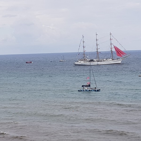 Three-masted frigate Khersones of FSUE "Rosmorport" took part in the parade of small vessels within the Tavrida - ART festival.