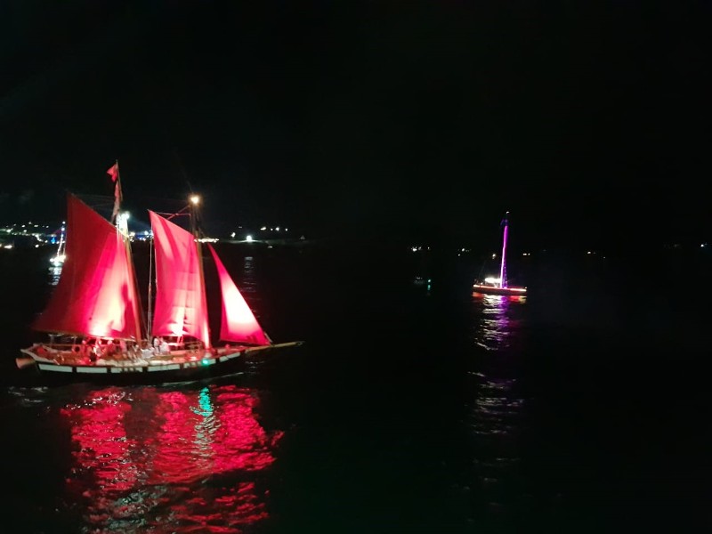 As part of the parade a competition was held aimed at promoting small-size and sailing navigation. The competition was held in two stages - during the day the jury evaluated the stylization of ships, and during the night - the lighting. Sailing ship Khersones participated in the parade out of the competition.