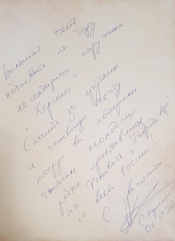 Besides, the First Deputy Head of the Presidential Administration of Russia Sergey Kiriyenko visited the frigate during the festival. He thanked the ship's crew and cadets of the Admiral F. F. Ushakov State Maritime University for their participation in the Tavrida - ART festival and left his wishes in the book of honorary guests of the sailing ship.