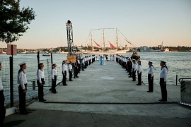 Khersones sailing ship of the FSUE "Rosmorport" will take part in the VII Big Sevastopol Officer Ball. FSUE "Rosmorport" is the title sponsor of the event. Khersones will moor on floating anchors in the waters of the Sevastopol bay opposite the Mikhailovsky coastal battery.