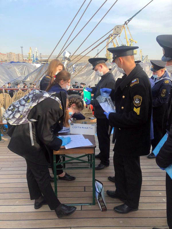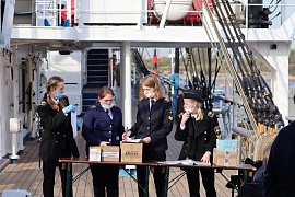 The third shift of Admiral Makarov State University of Maritime and Inland Shipping cadets came on board of the Mir sailing ship of FSUE “Rosmorport” at the seaport Big Port of St. Petersburg. 132 students from the Arctic nautical institute named after V.I.Voronin and the "Marine Academy" Institute of the Admiral Makarov State University of Maritime and Inland Shipping will be trained on board of the frigate until November 29. During this time, they will be able not only to demonstrate all their knowledge and skills but also to learn to work in a team.