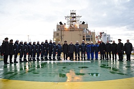 The national flag of the Russian Federation was raised on the Viktor Chernomyrdin icebreaker in the presence of the President of Russia Vladimir Putin