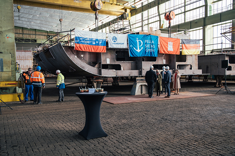 Laying down of the new ice-breaker with capacity of 18 MWatt and Icebreaker7 ice class by order of FSUE “Rosmorport” took place at the shipyard of the Pella factory. In September 2019 FSUE “Rosmorport” signed a contract with JSC “Pella” for the construction of a new vessel. The project 21900M2 diesel-electric linear icebreaker will be constructed under the 2018 Comprehensive Plan for the Modernization and Expansion of the Trunk Infrastructure, scheduled until 2024 to ensure year-round operation of the freezing seaports in the Far Eastern Basin.