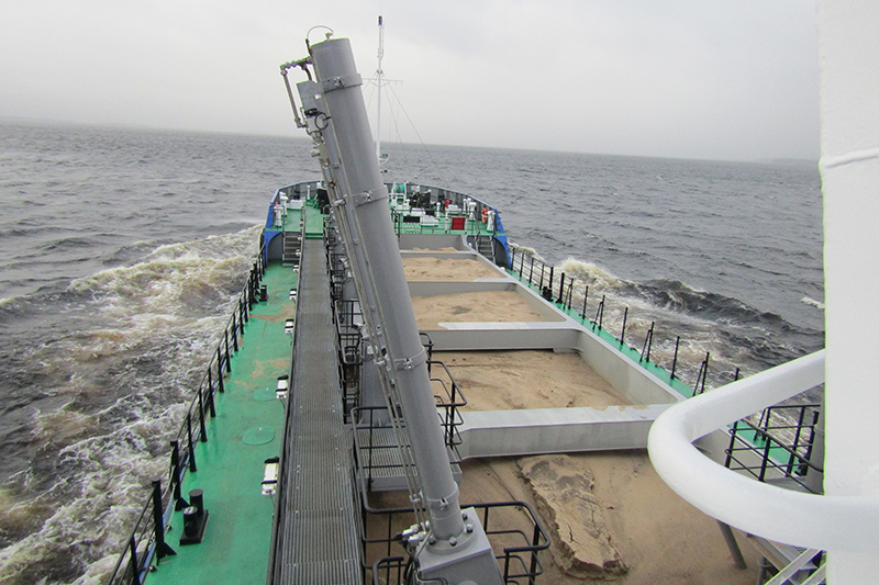 Self-propelled two-screw dredging barge of class KM (*) Ise1 R3-RSN AUT3 Hopper Morskaya, built at Onego Shipyard by the order of FSUE “Rosmorport”, is designed for transportation of soil from dredgers to dumping sites for dredging operations as part of a caravan of dredgers with bucket or suction dredgers.