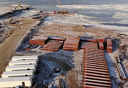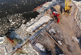 Builders submerged and reinforced 57 WTSP and 20 anchor piles of berth No. 1 and berth No. 2 of the ferry and passenger complex. To protect the sheet piling wall, additional piles are submerged which ensure its safety when the ice bursts in winter.